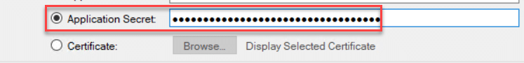 If you chose to use a Client Secret for authentication, click the Application Secret option and enter the Client Secret value you recorded earlier.