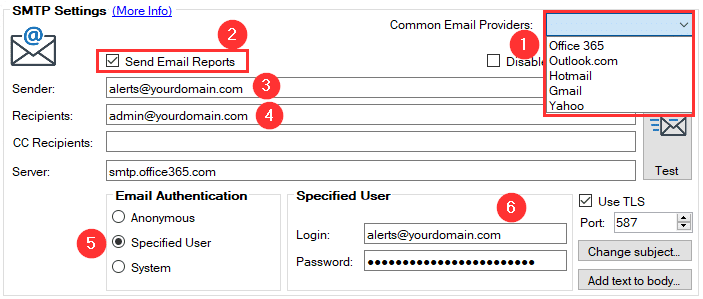 - Specify YOUR sender e-mail