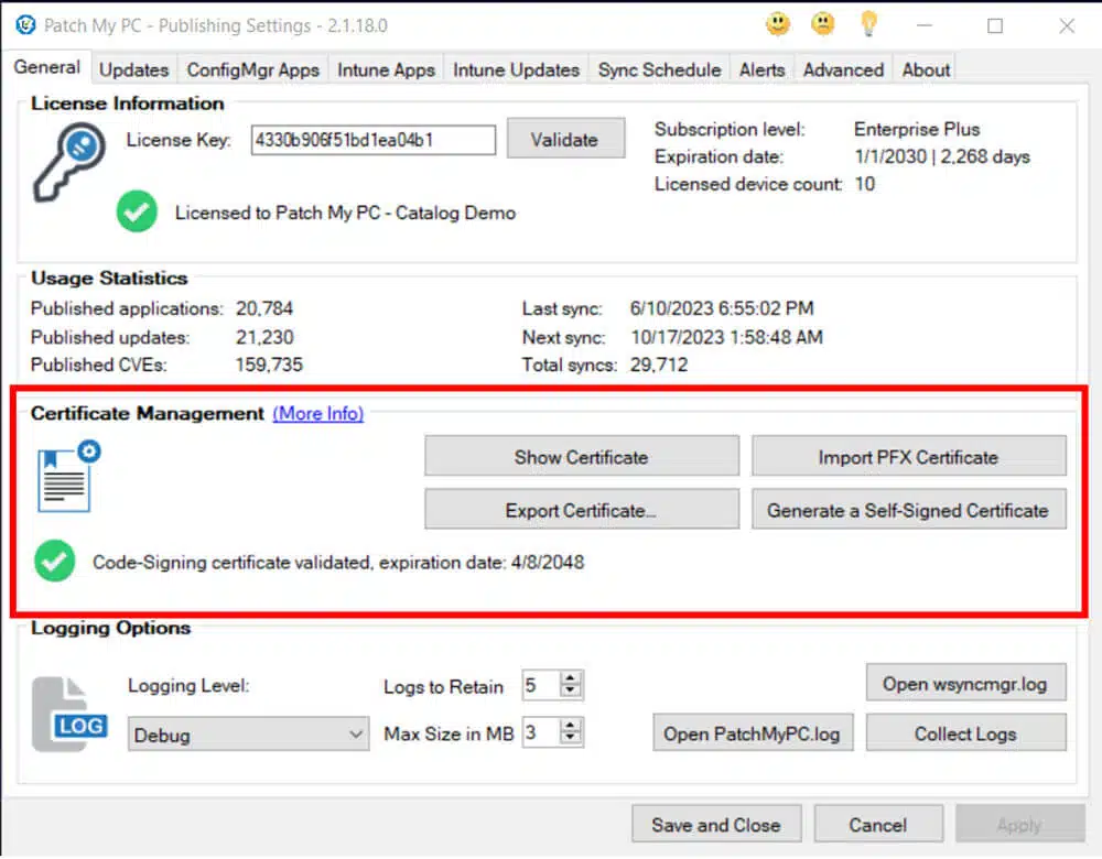 Unfortunately, this process has become more complicated as of June 1st, 2023. Industry standards have changed to require private keys for standard code signing certificates to be stored on HSMs (hardware security modules). To use a certificate on an HSM, you need to have access to the HSM and the appropriate credentials to use the certificate stored on it. Since Patch My PC and the Publisher cannot access your private HSM, that means that we cannot use that certificate to publish updates in your environment.