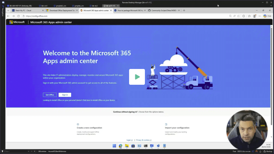 Packaging Microsoft 365 Apps for deployment begins at https://config.office.com, where administrators generate a configuration XML file that defines products, architecture, update channels, languages, and installation behavior.