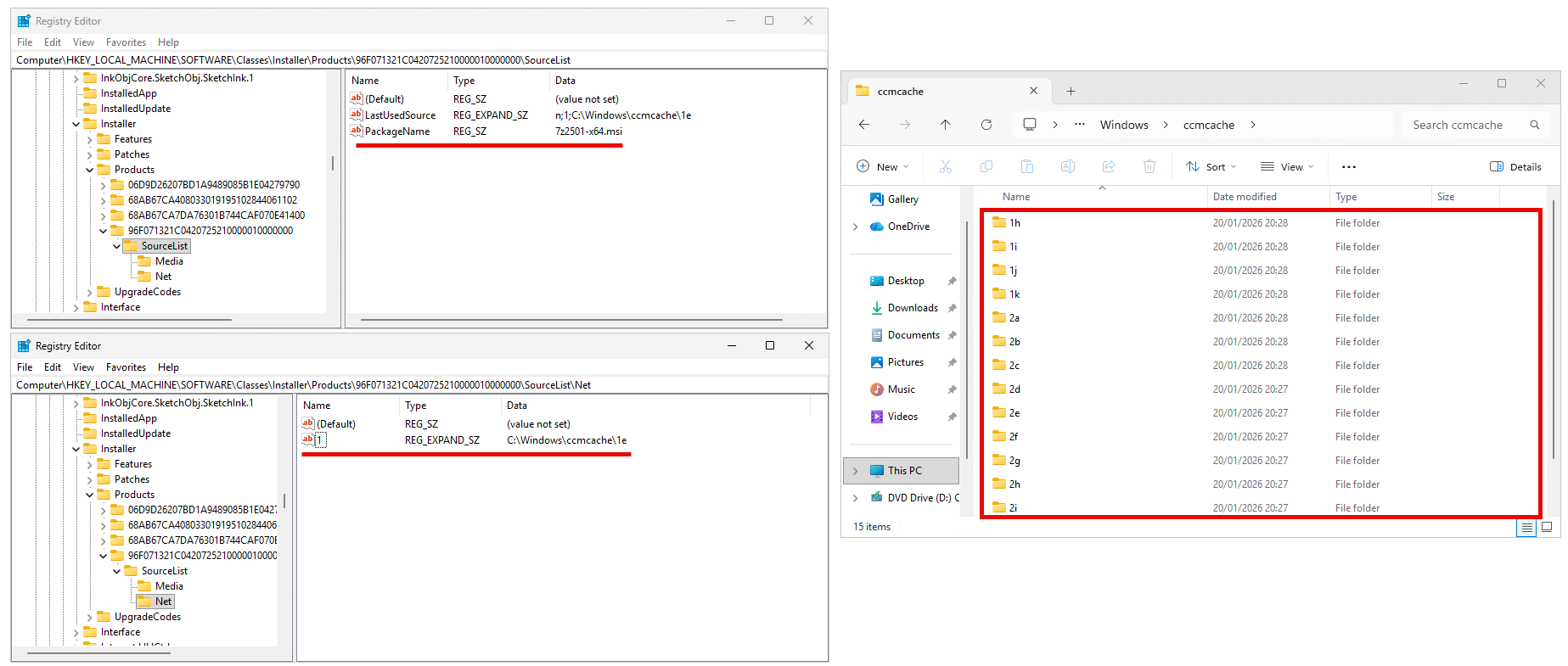 If the MSI file referenced by LocalPackage does not exist, Windows Installer falls back to what’s called the SourceList locations; it enumerates every key beneath this key: