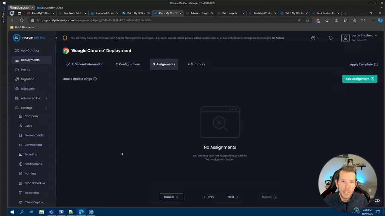 Now, as this is being built, there’s a couple of things to take note here. Currently, version 141 is the latest and greatest version of Google Chrome, and we are assigning it out to all of our users as available, as well as the update. We’re only sending it to our IT department. There may be an instance where updates start to overlap each other. This is something unique to third party applications where vendors typically update their software so frequently that they might overlap the rings that you have set up. Now that’s OK. We will continue to maintain the current version, in this case version 141, through all of your update rings. And if a new version is released within that time frame, we will start a new ring one with that new version. So from the user’s perspective, all they’re really going to see is currently it’s version 141 and version 142.