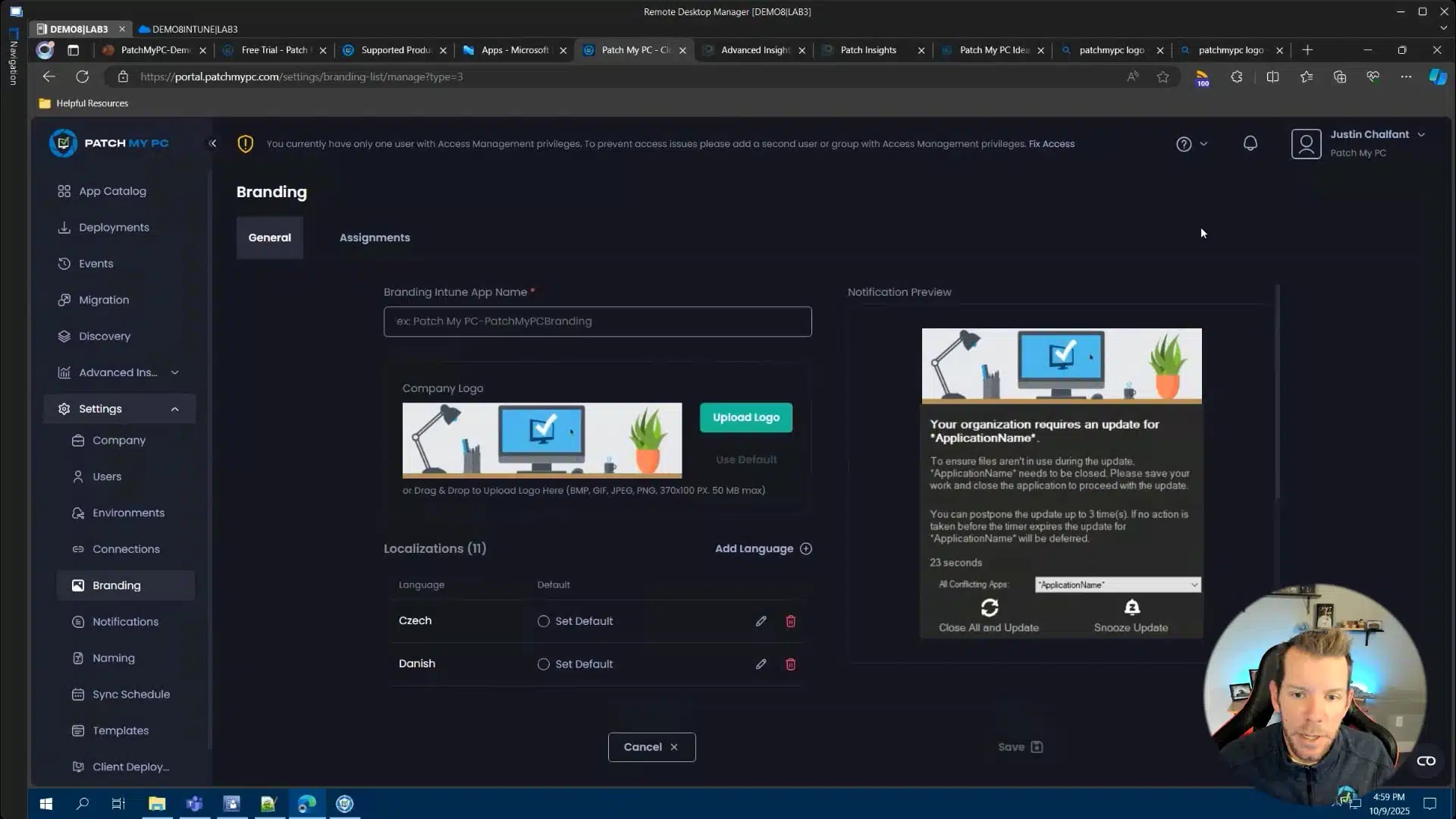In this video, we’ll cover the branding application, what it is and how it works. The branding app in Patch My PC Cloud allows you to configure your company’s branding, which is shown to users whenever software is installed or updated using Manage Conflicting Processes notifications.