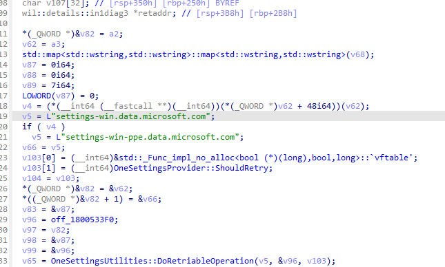 Windows receives rollout configuration through the OneSettings platform. Controlled Feature Rollout is one of the systems that sits on top of it. When Microsoft advances a rollout wave, the device does not download a new Windows Update. Instead, it retrieves an updated FeatureConfig payload from the OneSettings service endpoint: settings-win.data.microsoft.com