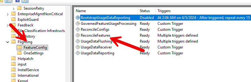 Even if nothing else happens on the device, this mechanism ensures that rollout state eventually converges with what Microsoft intends. The second path is more dynamic and comes from the FeatureConfig ReconcileFeatures task.