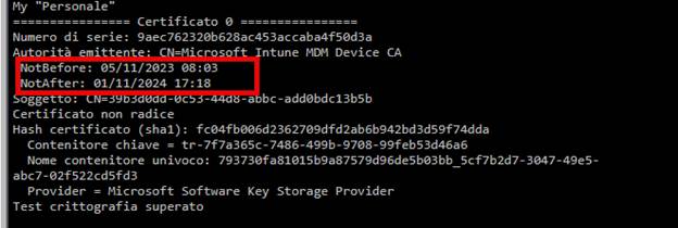 Intune reads those values and shows them as a fresh last check in, even though the certificate that was used for the handshake is already expired. The certificate will start to matter later in the session, when policy and management operations are attempted, but the timestamps are already updated at this early stage.