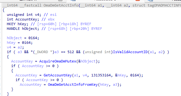 - B –> C[OmaDmGetAcctInfoFromKey<br>Read AcctInfo from HKLM\…Accounts\<GUID>]