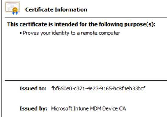 In a normal situation, this Intune MDM Device certificate should renew automatically, and no one would even notice. However, if the renewal fails, the device’s connection to the Intune service will be lost, and the device becomes orphaned.