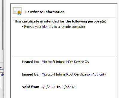 It’s the digital proof that a device really belongs to your organization (the OIDs contain your tenant IDs) and that Intune can securely talk to it. Without that cert, Intune cannot communicate with the device, and the device cannot communicate back.